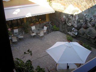 Set in a restored 19th century mansion, Hotel Villa Vicuna has everything a guest could want, including wi-fi. The rooms are beautiful, individually decorated and open onto the two courtyards which have tables, schulpture, antiques and gardens. The second floor rooms open onto a wide veranda overlooking the courtyards with its own seating. Service is attentive. Breakfast is served in a glass walled room looking out onto the main courtyard and drinks are available at its bar in the evening. The hotel is only two blocks from the Plaza yet the thick walls of the mansion insulate any and all possible sounds of the town.